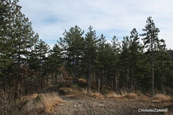 Il sentiero scende, in maniera sempre più ripida, al centro della pineta e nei punti in cui la vegetazione si fa meno folta, riesco a intuire che sto seguendo la strada sbagliata per il Dego, che si trova da tutt'altra parte: il pensiero di aver ignorato una poco evidente deviazione verso destra si fa sempre più strada dentro di me. Ma ormai sono qui e quindi...non volendo tornare indietro, decido di seguire fino in fondo questo sentiero, cercando di scoprire dove diavolo andrà a finire.