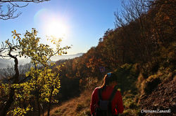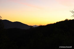 Splendida vista, splendido tramonto: questo significa che è tardi. Molto tardi! Quando ci siamo resi conto che avevamo ormai irrimediabilmente allungato la nostra escursione, avevamo calcolato che saremmo arrivati a Bastia all'incirca in un'oretta, per le 16,45, più o meno. Ora invece sono sì, le 16,45, ma ancora non vediamo i tetti del paese di Bastia! Urge accelerare....