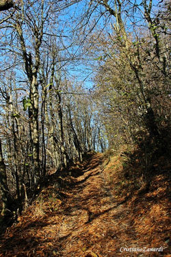 Sono panorami inediti, in un certo senso, non avendo mai camminato in queste zone prima d'ora. Il sentiero, nella prima parte, alterna tratti scoperti a tratti boscosi, quindi si snoda prevalentemente all'interno del bosco con numerosi saliscendi - compresa una deviazione realizzata dopo che il sentiero originario era, probabilmente, franato - e pur non essendo particolarmente faticoso, fatta eccezione per qualche ripida ma breve salitella, ci sta comunque stancando. Anzi, a dirla tutta, forse il sentiero per Bastia non era così corto....