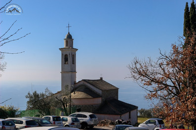 Raggiungiamo subito la piccola chiesetta di San Rocco e da qui, proseguiamo su una scalinata che dapprima sale ripidissima tra le case e, successivamente, con numerosi zig-zag taglia gli orti che occupano il pendio, facendosi strada tra i muretti che li delimitano. Dopo una serie infinita di scalini, procediamo su una crosa che passa tra alcune villette isolate, offrendo alle spalle una bella vista su Santa Croce e Teriasca. Il percorso modera le proprie pendenze passando tra grandi muri in pietra, quindi riprende a salire fino a raggiungere, in panoramica posizione sul Golfo Paradiso, la chiesa di Sant’Apollinare (mt. 265) dove troviamo molte persone sedute a godersi il caldo di questa giornata dal sapore davvero poco invernale.